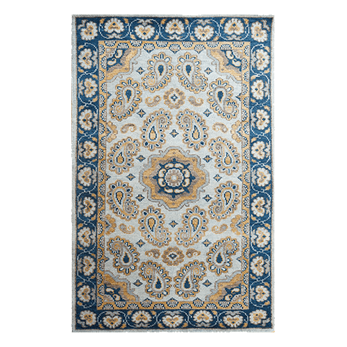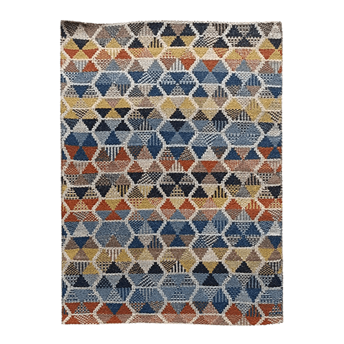 Hand Woven Grey Blue Wool Rug Flat Weave Construction